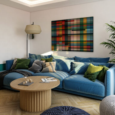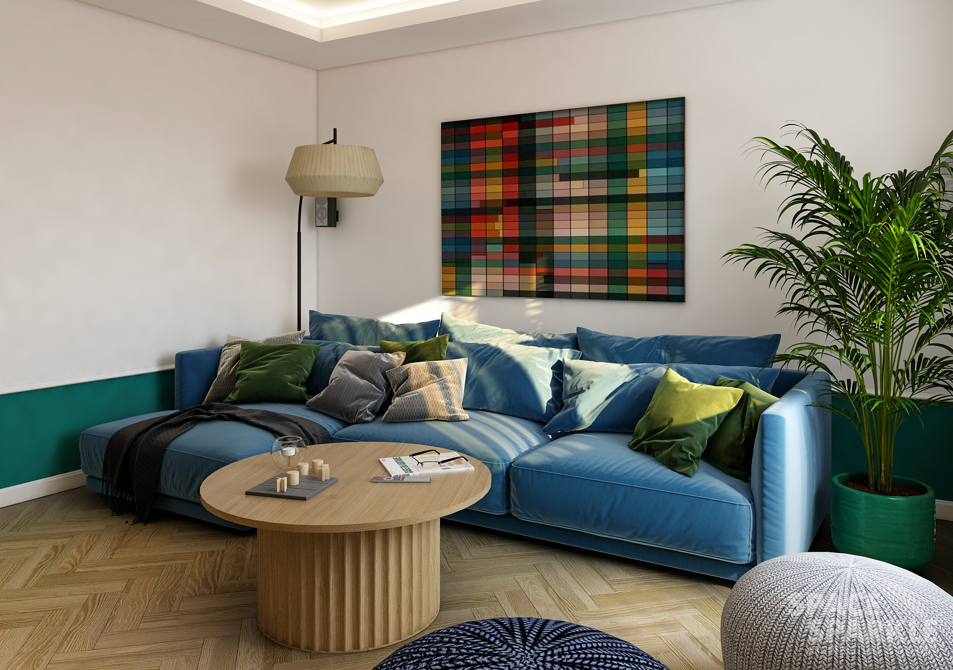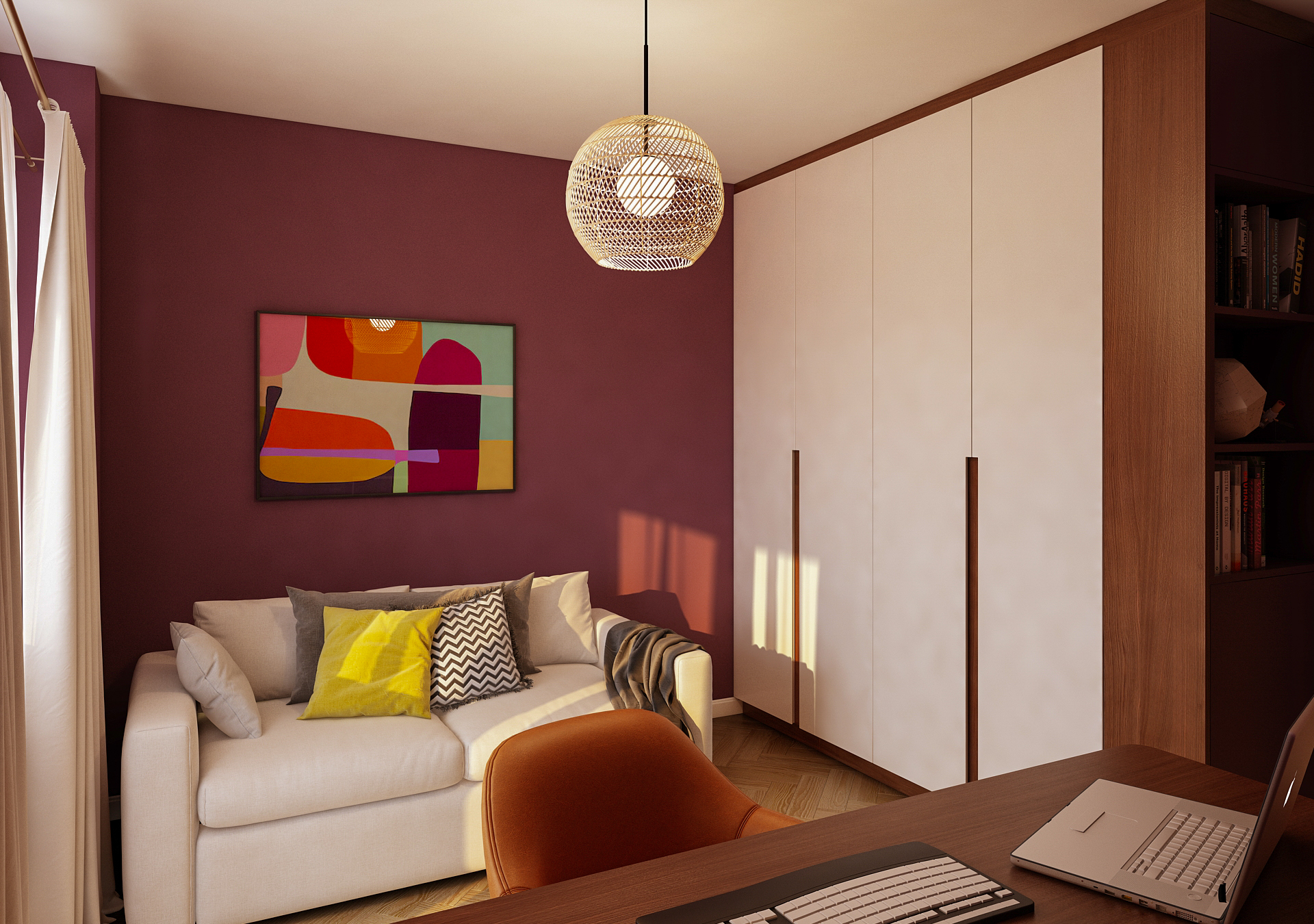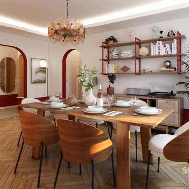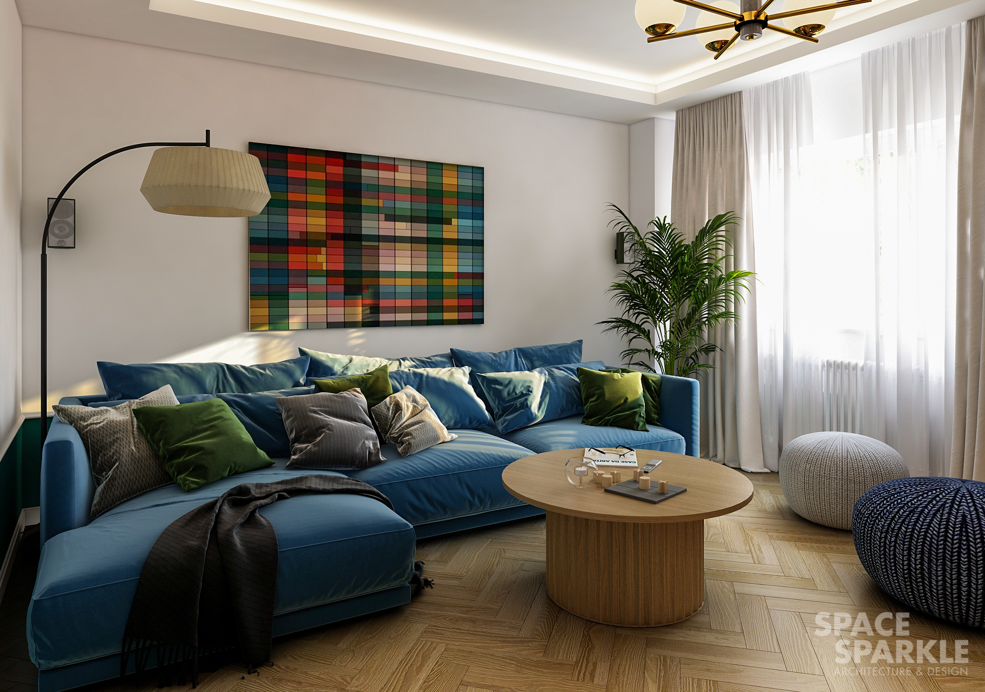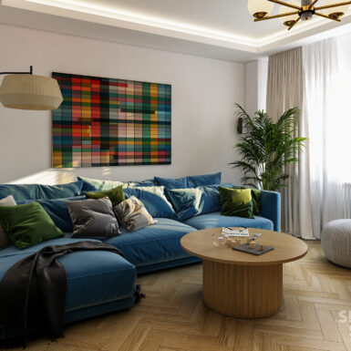 Acest proiect de design interior pentru apartament de 90 mp a luat naștere din dorința clară a beneficiarilor de a integra stilul Mid-Century Modern într-un spațiu de bloc, completată de o abordare curajoasă a culorii. Rezultatul este un interior cald, autentic și plin de energie.
